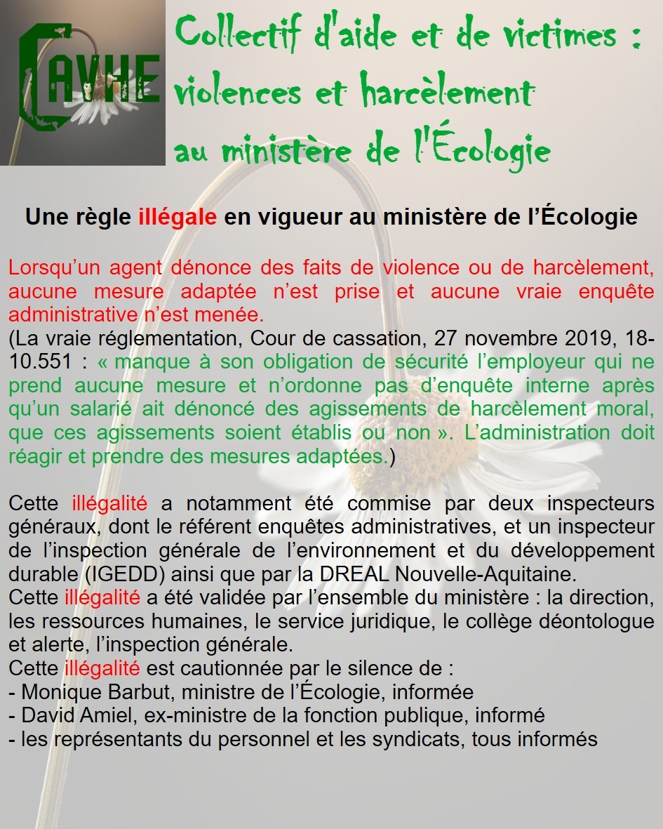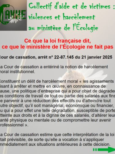 violences et harcèlement au ministère de l'Écologie